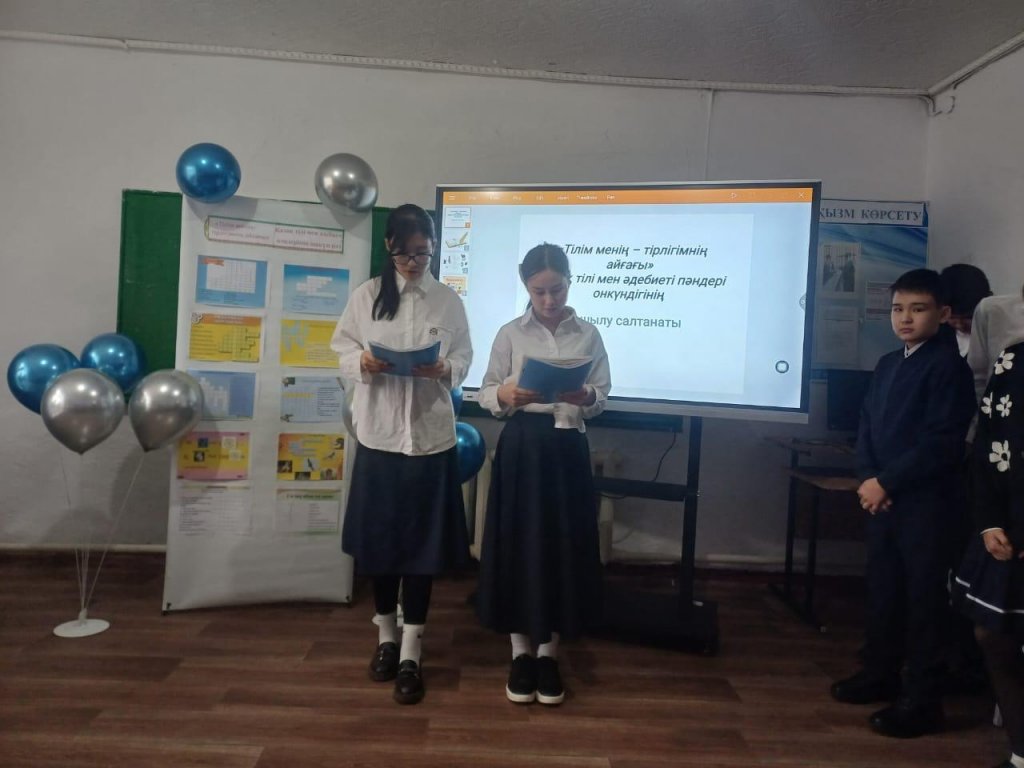 Оқушылар тіл туралы өлеңдер оқып, мақал-мәтелдер айтып, шағын көрініс көрсетті. Сондай-ақ, апталық барысында өтетін іс-шаралардың жоспары таныстырылды: