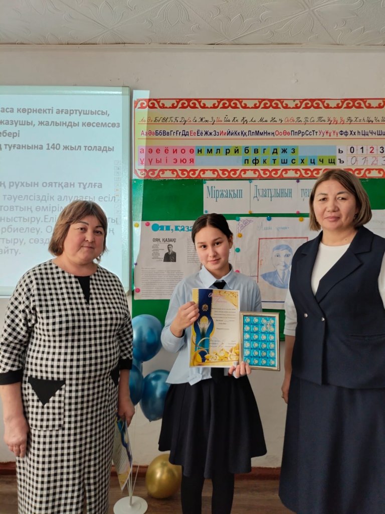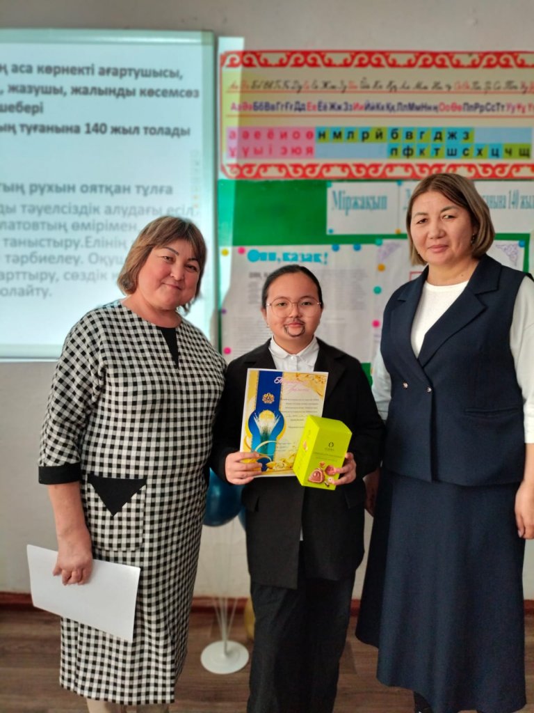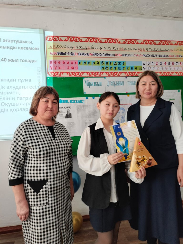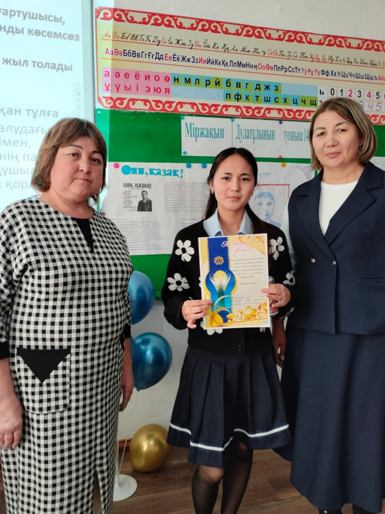 Қазақ тілі мен әдебиеті пәні бойынша өткізілген онкүндік барысында ерекше белсенділік танытып, білім мен өнерін көрсеткен оқушыларды марапаттау сәтіне де келіп жеттік.