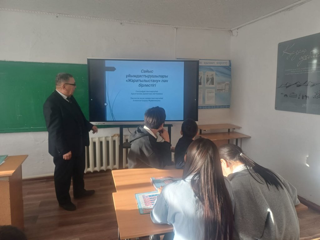 «Жаратылыстану ғажайыптары « атты интеллектуалды ойынымызды бастайық. Сайысымызды бастамас бұрын қатысушы оқушыларымызды 2- топқа бөліп отырғызып топ аттарынан бір- бірден таңдауларыңызды сұраймын. Әр оқушы өз таңдағандары бойынша көрсетілген топтарға (« Алғырлар « тобы, «Қыран « тобы ) бөлініп отырады. Сайыстың ретімен таныстырып өтейін. Сайыс 5 -кезеңнен тұрады. Алдымен тақтаға сандар бар суреттер ілінеді. Оқушылар сұрақтарға жауап бере отырып суреттерді жинап шығару керек. Әр топтан 1-1 оқушы шығып бір сұрақтан таңдап сұрақтарға жауап береді. Тез, жылдам, нақты жауап берді. Оқушылар ойынға деген қызығушылығы артып әрбір кезеңдердегі жұмбақтар, шартты белгі дегеніміз не? Карта дегеніміз не ? Шашылған әріптер арқылы сұрақтарға тез жылдам жауап беріп белсене қатысты . сайысқа жақсы қатысқан оқушыларға түрлі сыйлықтар берілді.